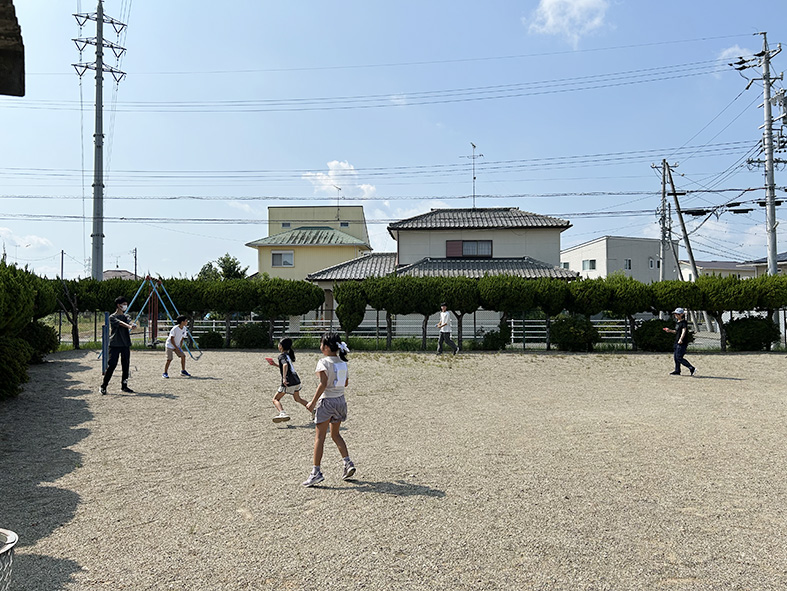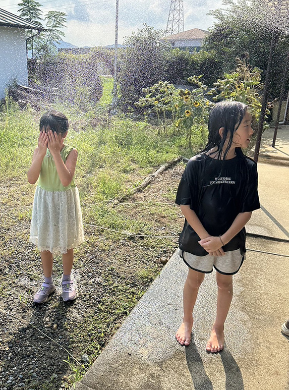 背中に貼ったシート(水で色が変わる)を水鉄砲で狙います🔫😆