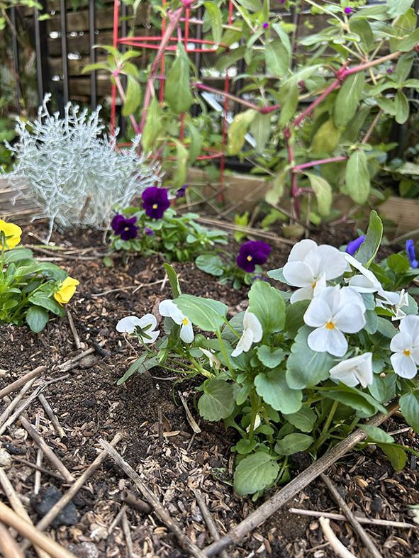 自分ちのレイズドベッドに寄せ植え😆